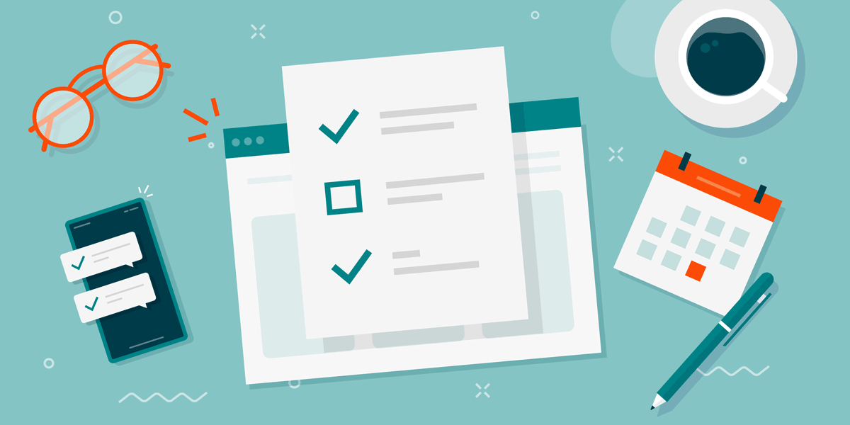 overhead view of a desk with a checklist